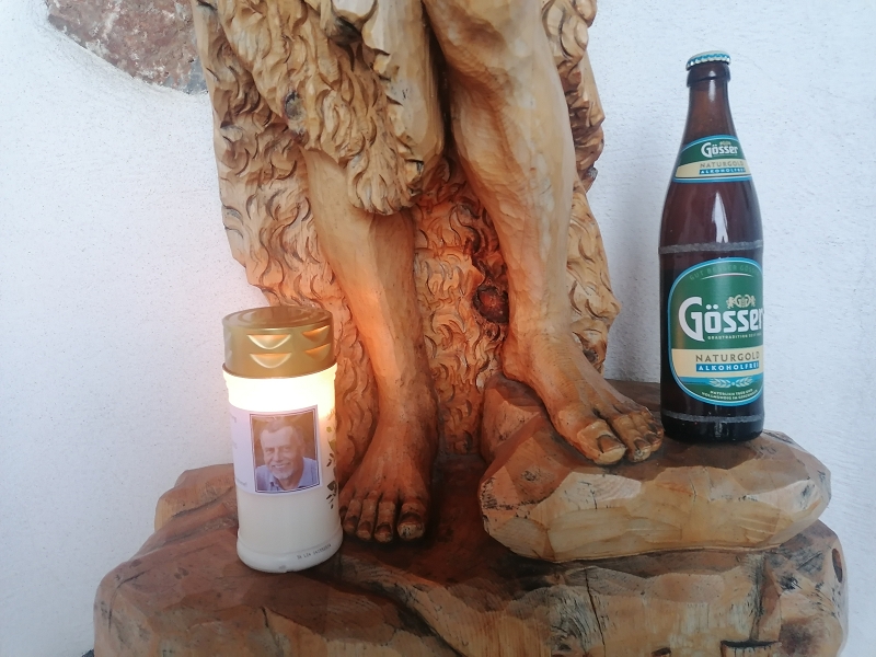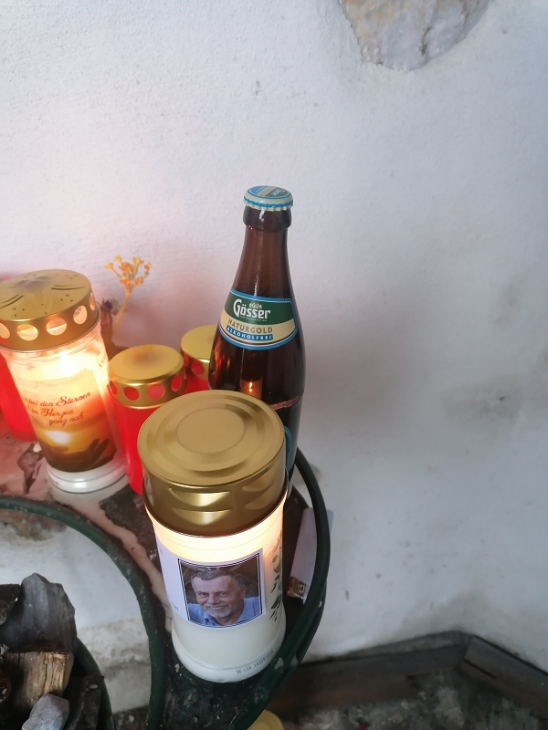 In Erinnerung wurden Kerzen entzündet und neben einem Foto eine Flasche von Adi’s Lieblingssaftes beigestellt.